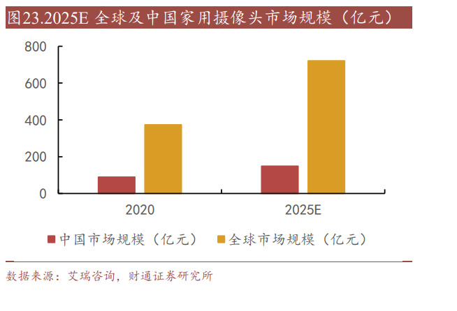 智能家居摄像头有望维持双位数增长。根据艾瑞咨询的统计,2020 年,中国智能 家居摄像机出货量达 4,040 万台,市场规模达 89 亿元,随着元器件和中间件成本 下调,将推动家用摄像头产品持续渗透,预计到 2025 年出货量将达到 8,175 万台, 市场规模将达到 149 亿元。而全球智能家居摄像机的渗透率较低,出货量及市场 规模有望维持更快的增速,2020-25 年 CAGR 分别为 19.31%和 14.09%。 视频类物联网设备的云平台市场规模亦有望高速增长。根据艾瑞咨询的数据,2020 年中国生活领域物联网云平台设备连接量超过 11 亿台,预计到 2025 年将增长至 26 亿台,年复合增长率为 18.40%;其中,视频类设备连接量为 2.3 亿台,预计 2025 年将超过 9.2 亿台,年复合增长率为 32.07%。