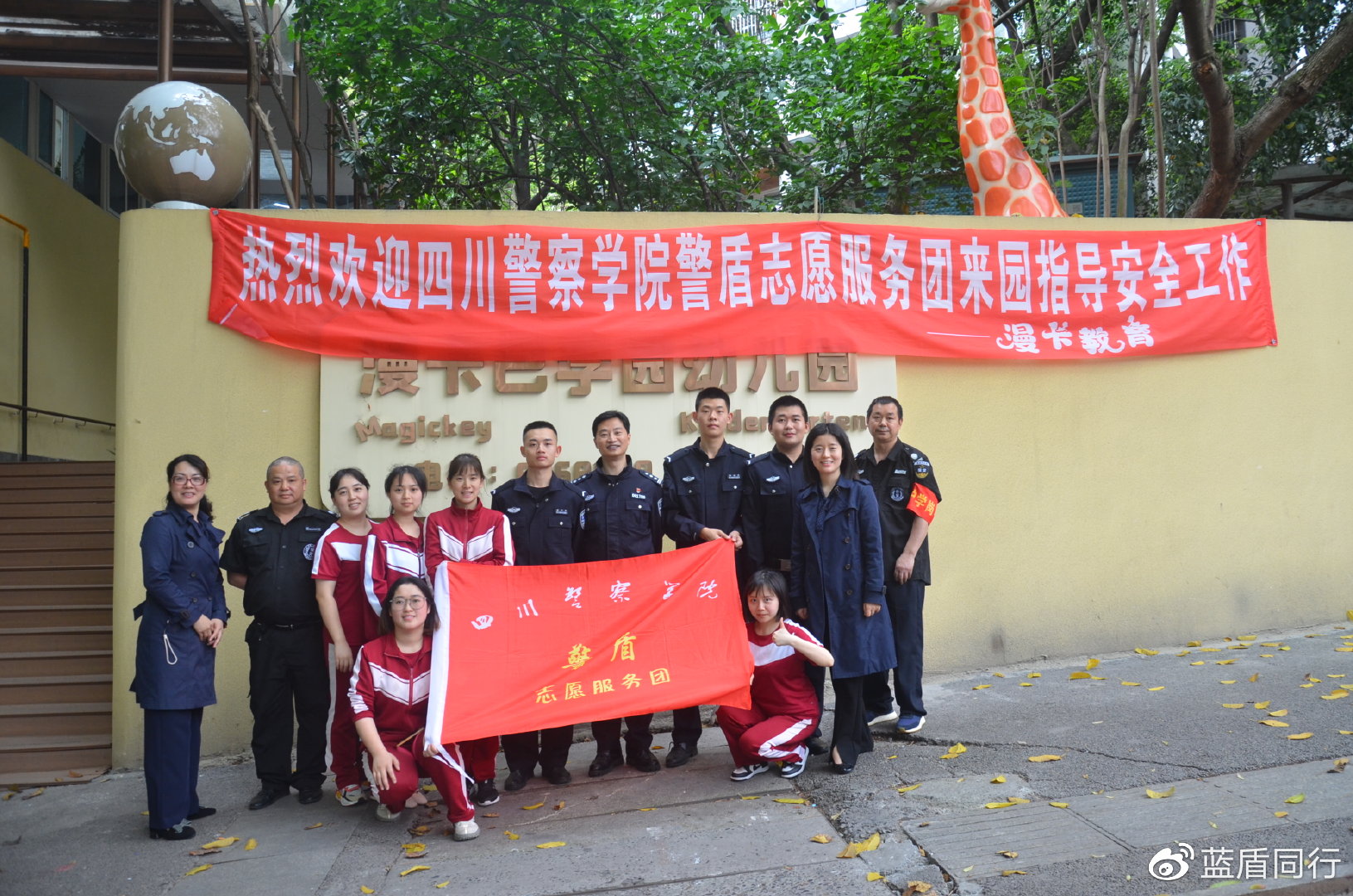 2023年4月28日下午,四川警察学院警盾志愿服务团(下称警盾)应邀来到泸州主城区漫卡幼儿园,团长廖胜利为幼儿园老师们上了一堂如何应对校园突发事件的安全课,并组织志愿者者杨浩然、岑卓立和雷书恒协同幼儿园工作人员开展演练。通过三次演练,大家都获益匪浅。