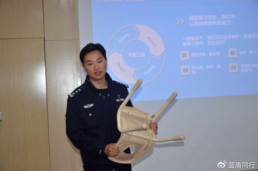 廖胜利教老师们学习如何应对,如何使用身边随手可见的东西应急自护、抵挡等。