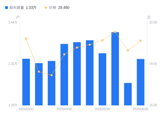 近一年(2024年6月30日至2025年6月30日),恒辉安防A股股东户数从8466户,增加至1.33万户,增幅57.62%,区间股价上涨65.04%。