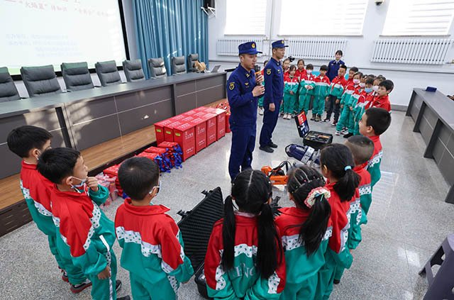 为切实筑牢校园安全防线,提升师生的消防安全素养与应急自救能力,11 月 12 日,呼伦贝尔市消防救援支队联合呼伦贝尔青年企业家商会(以下简称 “青商会”)、胜利街道办事处,共同走进胜利街小学开展 “火焰蓝’传知识·青商会’送平安” 主题宣传活动,为全校师生送上一堂生动实用的消防安全 “必修课”,活动特别邀请内蒙古消防宣传公益使者包胡尔查老师到场助力。